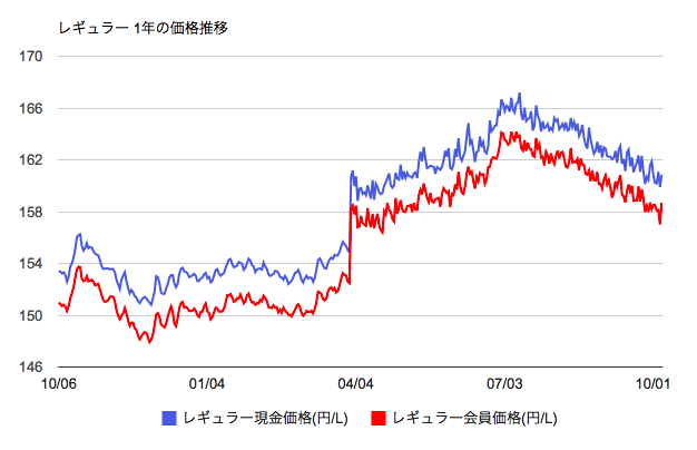 ガソリン価格推移チャート [ガソリン価格比較サイト gogo.gs]
