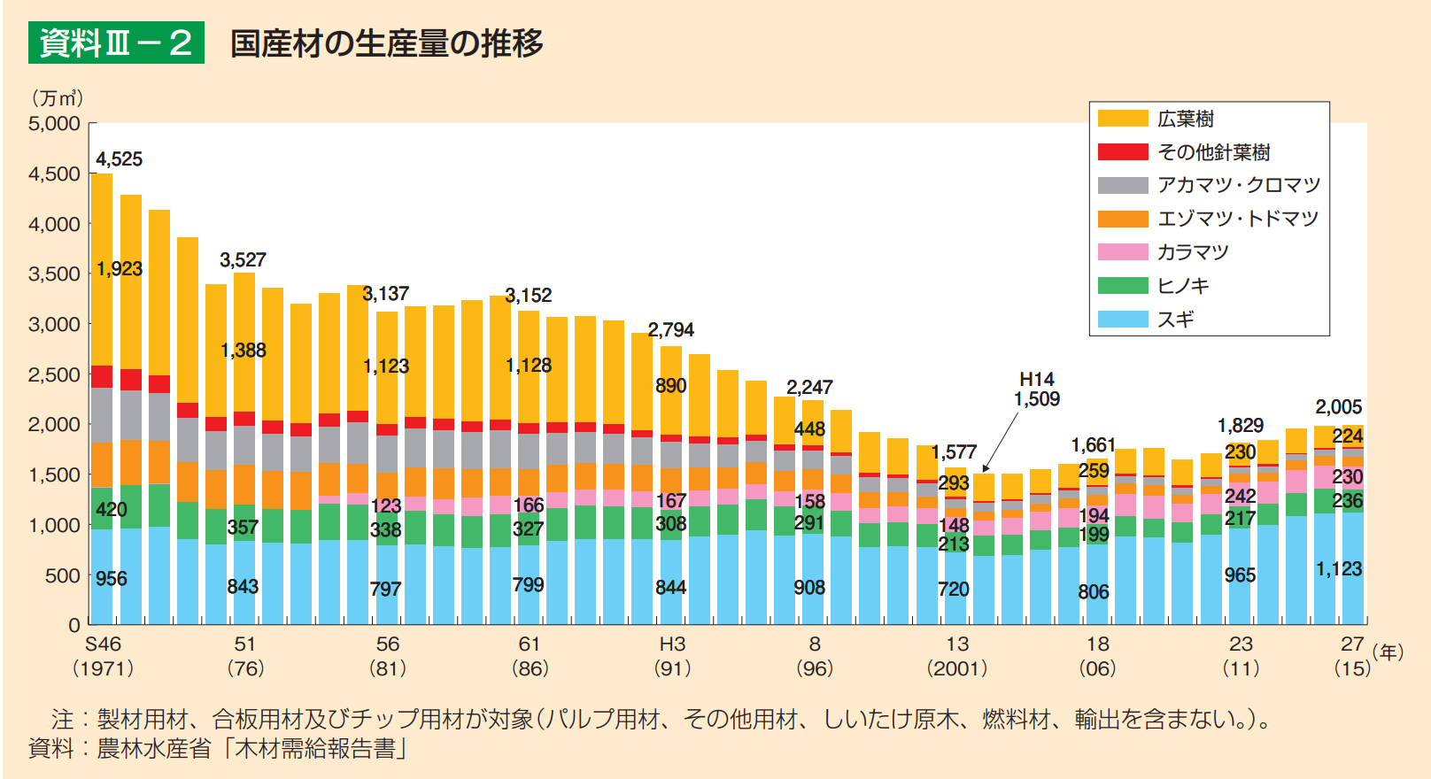 まだ国産木材にも残された需要があるのかという程度の認識でした。ところが重機のことが気になって、日本の林業がどうなっているのだろうかと「平成28年度 森林・林業白書」を目を通して見ると、実際には「国内林業の衰退」は、もはや過去の話で、林業の衰退には歯止めがかかり成長産業化に向けた動きが起こってきているというのです。
