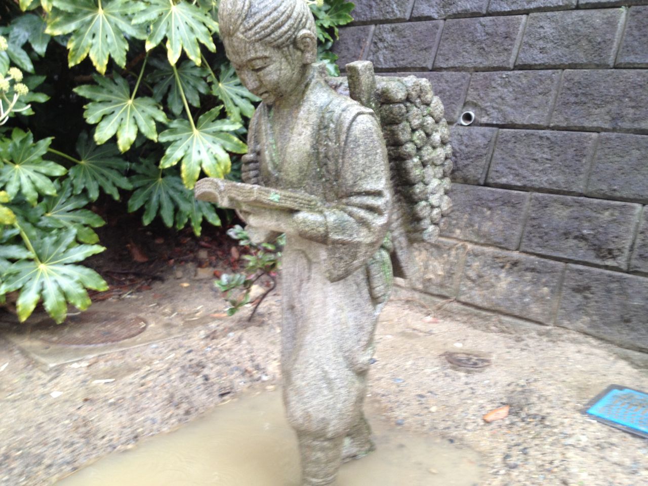 まあしかし二宮金次郎の足元が雨で水たまりになってしまっています。それは業績を落としたマクドナルドの足元を象徴しているようで、なにかのブラックジョークなのかもしれません。