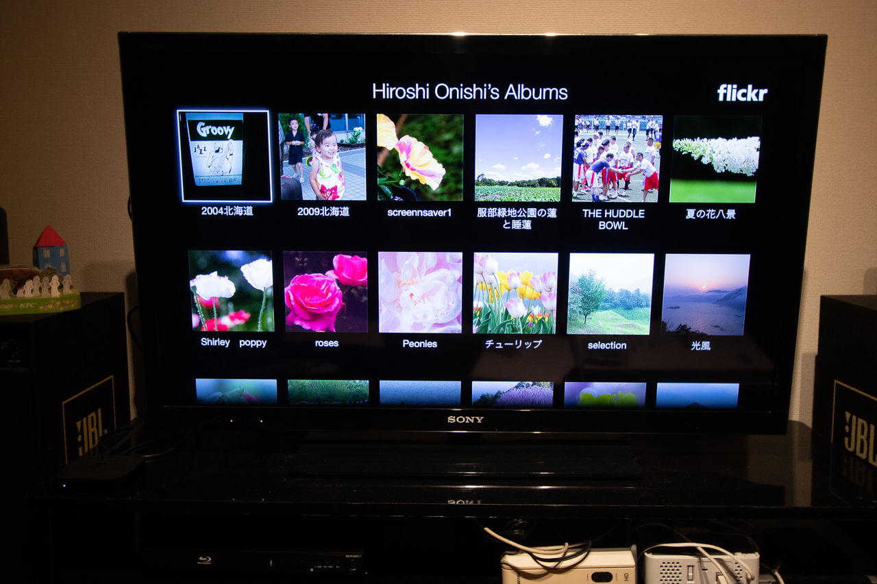 ²»³Ú¤òή¤·¤Ê¤¬¤é¡¢TV¤Î²èÌ̤Ǽ̿¿¤ò´Ñ¤ëÊýË¡¤Ç¤¹¤¬¡¢¥¢¥Ã¥×¥ëTV¤ÎMusic¤È¥¹¥¯¥ê¡¼¥ó¥»¡¼¥Ð¡¼¤ò»È¤¤¤Þ¤¹¡£²æ¤¬²È¤Ç¤Ï¡¢¥¢¥Ã¥×¥ëTV¤Î¥¹¥¯¥ê¡¼¥ó¥»¡¼¥Ð¡¼ÀßÄê¤Ç¡¢Flickr¤Î¥¢¥ë¥Ð¥à¤ò»ØÄꤷ¤Æ¤¤¤Þ¤¹¡£¥¹¥é¥¤¥É¥·¥ç¡¼¤Ï¡¢¤½¤Î¤Þ¤Þ¤À¤È¤»¤ï¤·¤Ê¤¯¼Ì¿¿¤¬ÊѤï¤Ã¤Æ¤·¤Þ¤¦¤Î¤Ç¡¢¥¹¥é¥¤¥É¥·¥ç¡¼¤ÎÀßÄê¤ò¥¯¥é¥·¥Ã¥¯¤Ë¤·¡¢¼Ì¿¿¤¬ÊѤï¤ë»þ´Ö¤¬Ä´À°¤¹¤ì¤ÐÍî¤ÁÃ夤¤Æ¼Ì¿¿¤¬³Ú¤·¤á¤Þ¤¹¡£